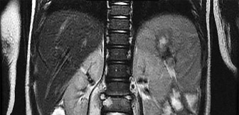 Figure 5 shows diskitis with vertebral osteomyelitis. The disease is characterized by fever and back pain. Movement is extremely uncomfortable for these children, and they may adopt unusual postures to alleviate pain. The MRI shows involvement of 1 vertebrae and an adjacent disk. Left untreated, this condition often spreads to involve multiple vertebrae and also can cause an epidural abscess. Treatment during the early stages is IV antibiotics. Many orthopaedic surgeons also use bracing to prevent late vertebral collapse.