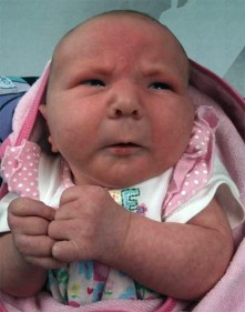 Beckwith-Wiedemann syndrome (Figure 96) is associated with chromosome 11 mutations near the IGF gene. Neonatal hypoglycemia; macroglossia; visceromegaly; hemihypertrophy; and embryonal tumors, especially Wilms tumor, are associated with mutations of chromosome 11.