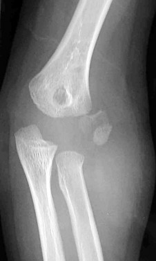 Figures 9a and 9b are the radiographs of a 9-year-old boy who fell from the monkey bars and sustained a closed fracture of the elbow.