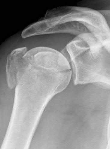 The humeral component appears well-positioned in this radiograph. Over tensioning of the deltoid and excessive humeral lateralization would risk an acromial stress fracture and could limit shoulder range of motion. This is an inlay humeral stem, which does not lateralize the humerus.