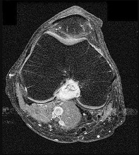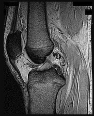 The low likelihood that common symptoms associated with meniscal body injury will manifest in patients with root tears makes clinical diagnoses challenging. For instance, patients with a posterior root tear injury may experience joint line pain, but the absence of mechanical symptoms such as locking or catching is probable. Meniscal root tears are also not typically associated with an inciting traumatic event. MRI has become increasingly used in the diagnosis of meniscal root tears. Telltale signs of a root tear include the presence or absence of a ghost sign, which is the absence of an identifiable meniscus in the sagittal plane or high signal replacing the normal dark meniscal signal. The posterior meniscus is seen in sagittal MRI view in all images up to the one that shows the PCL. The posterior root of the medial meniscus attaches anterior to the posterior cruciate ligament (PCL).