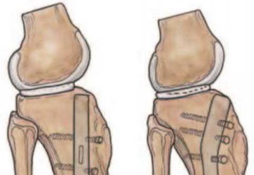The Dega osteotomy is stabilized by threaded pins.
