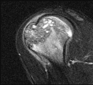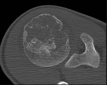 Figures 48a through 48e are the MR image, radiograph, CT scan, and biopsy specimens of a 14-year-old boy with right shoulder pain without antecedent trauma. What is the most likely diagnosis?
