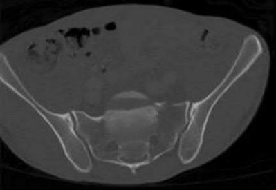 Spondylolysis may develop as a stress fracture resulting from repetitive hyperextension during athletic activities. In young people, the pars interarticularis is thin, the neural arch has not yet reached maximum strength, and the intravertebral disk is less resistant to shear. While clinical symptoms may lead to the suspicion of spondylolysis, radiographic confirmation may be difficult in early cases. Plain radiographs may be negative initially, and the plain MRI scan may not offer good visualization of the pars. A bone scan with SPECT is very sensitive initially. CT scans with regular axial and reverse-gantry angled cuts may help determine the type of fracture and the course of treatment.