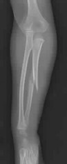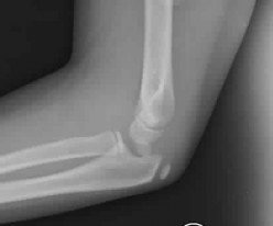 An 11-year-old boy reports the acute onset of elbow pain and swelling after pushing his brother. The patient's mother and a younger sibling have experienced numerous fractures. You note that the patient and his mother have blue sclera and normal-appearing teeth. A radiograph of the elbow is shown in Figure 60. This patient's disorder is most likely the result of ](http://www.orthobullets.com/pediatrics/4102/osteogenesis-imperfecta)Review Topic