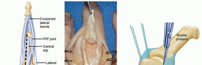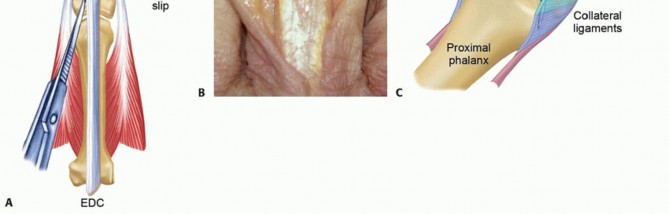 - Chamay A. A distally based dorsal and triangular tendinous flap for direct access to the proximal interphalangeal joint. Ann Chir Main 1988;7:179-183.