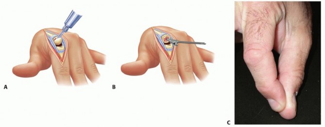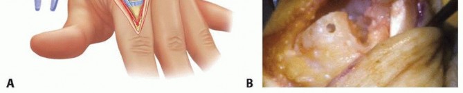 The MCP joint is approached from dorsally with a midline incision.The PIP joint may be approached from either the dorsal or volar approach.