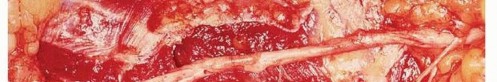 TECH FIG 5 • Intramuscular transposition. The nerve is placed in a tunnel in the muscle, and the fascia is closed. (Courtesy of William Kleinman, Indiana Hand Center.)