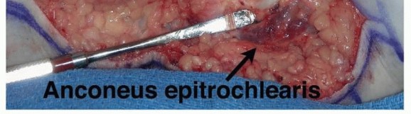 Dissect through the fat, down to the level of the medial epicondyle.