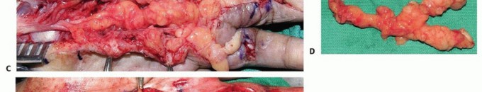Transient paresthesias, numbness, or weakness are common after enucleation of a schwannoma (75%); however, long-term nerve function is generally the same as or improved compared to the preoperativestate with a recovery rate of 95%.10 Tumor recurrence is rare.Permanent neurologic deficits follow en bloc resection of a neurofibroma, thus limiting the surgicalindications for this procedure. Microdissection preserves nerve function13 but likely has an increased risk of recurrence.Resection of a lipofibromatous hamartoma of the median nerve (including partial excision or interfascicular dissection) often results in permanent nerve deficits. There is limited long-term follow-up for nerve grafting of these lesions.