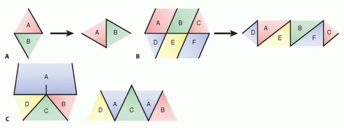 TECH FIG 4 • A. Two-flap Z-plasty. B. Repeating flap, multiple Z-plasty. C. Five-flap jumping man Z-plasty. After release of underlying tissue and extension of the joint, the Z-plasty flaps should fall naturally into a transposed position.The flaps are sutured in place with absorbable sutures.Antibiotic ointment is placed on the incision, followed by soft bulky dressings, which remain for 2 days.Patients are allowed progressive gentle range of motion. Stretching and scar massage are encouraged to begin 2 to 3 weeks postoperatively.Abduction or extension splints may be used at night to maintain posture.Variations on the basic Z-plasty can be performed to accommodate specific areas.For example, a five-flap “jumping man” Z-plasty (combination of two Z-plasty flaps with a V-Y advancement flap) works well to release web space contractures.Compared to a basic Z-plasty, the additional flaps maximize gain in length and the V-Y flap introduces unscarred skin into the reconstruction, providing more pliability and elasticity to the reconstructed web space (TECH FIG 4C). Table 2 Z-Plasty Angles for Burn Scar Contracture Release P.1240Z-Plasty Angles (Degrees)|Theoretical Gain in Length---|---30|2545|5060|7575100