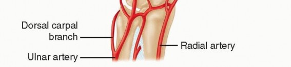 Choose a suitable vein on the dorsum of the hand, that is, one that will lie in a straight line following anastomosis to the radial or ulnar artery near the palmar wrist.20