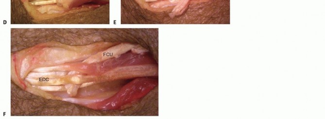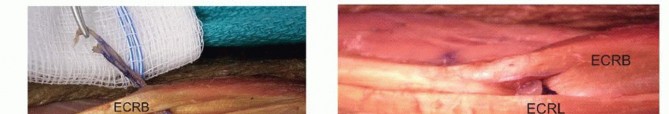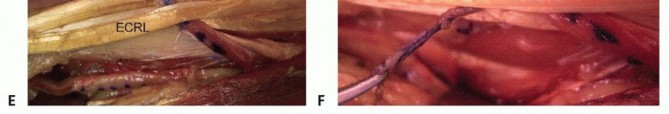 TECH FIG 1 •(continued)E,F. The PT is then woven through the ECRL and ECRB tendons.