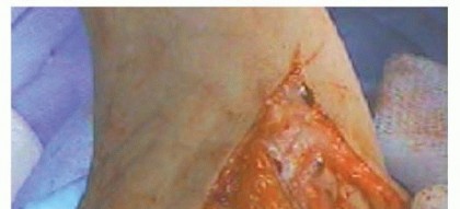 FIG 3 • Triceps-reflecting approach: The triceps in continuity with the antebrachial fascia, proximal ulnar periosteum, and anconeus are elevated and retracted laterally.