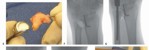 Outcomes vary with the indication and type of prosthesis used.3The pain of radioulnar impingement is relieved in patients with previous excision arthroplasty and stability is restored.9The range of motion of the forearm after prosthetic replacement remains largely unchanged, as it depends on previous scarring.Grip strength recovered depends on the underlying problem, but in patients with severe pain and weakness preoperatively, final grip averages about 60% of the opposite side.Long-term results are limited and variable.One study reported 6-year survival of implant as 83%.7Implant failure was associated with a history of previous surgery, use of an extended collar, lucency greater than 2 mm around the implant stem, and pedestal formation at the tip of the implant.7Continued pain relief and no deterioration or revision requirements were seen in other small, longer term followup studies.10,11
