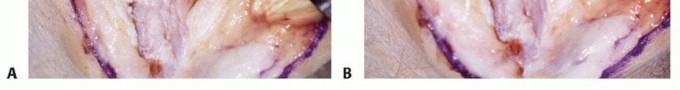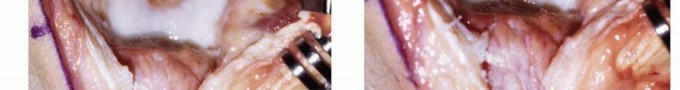 A splint is applied with the elbow in relative extension (15 degrees) for 1 week. Active range of motion is allowed 7 to 10 days after surgery.The patient is reevaluated at 3 weeks, 6 weeks, and 3 months after surgery.Continuous passive motion can be initiated on the day of surgery and is discontinued after 3 weeks.Sports activities are permitted after 6 weeks to avoid a potential fracture due to the biomechanical weakening of the columns.5