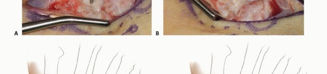 Rather than obtaining bone graft from the distal radius, a standard technique of harvesting bone from the iliac crest may be used.16,20A 2- to 3-cm incision is made just inferior to the superior border of the iliac crest just posterior to the anterior superior iliac spine (ASIS).The incision is kept below the belt line to minimize postoperative incisional tenderness.The incision is posterior to the ASIS to avoid iatrogenic nerve injury and subsequent numbness and painover the proximal lateral thigh.Dissection is accomplished using cautery through the deep fascia down to the crest. The superior crest is exposed and muscles are released from a portion of the outer table using cautery and an elevator.A water-cooled sagittal saw and a curved osteotome are used to harvest a bicortical segment of corticocancellous graft.The graft is slightly larger than the measured defect in the scaphoid. The inner table is left intact.The harvested outer table will be volar when the graft is placed in the scaphoid and the superior crest will be radial.A curette is used to harvest cancellous bone graft.The wound is copiously irrigated and temporarily packed with thrombin-soaked Gelfoam while attention is redirected to the scaphoid.After the scaphoid is reconstructed, the Gelfoam is removed and the wound is again irrigated. If indicated, a small suction drain is placed below the fascia.The wound is closed in layers with a running locking stitch used for the fascia.A local anesthetic with epinephrine may be injected before harvest of the graft or after closure.